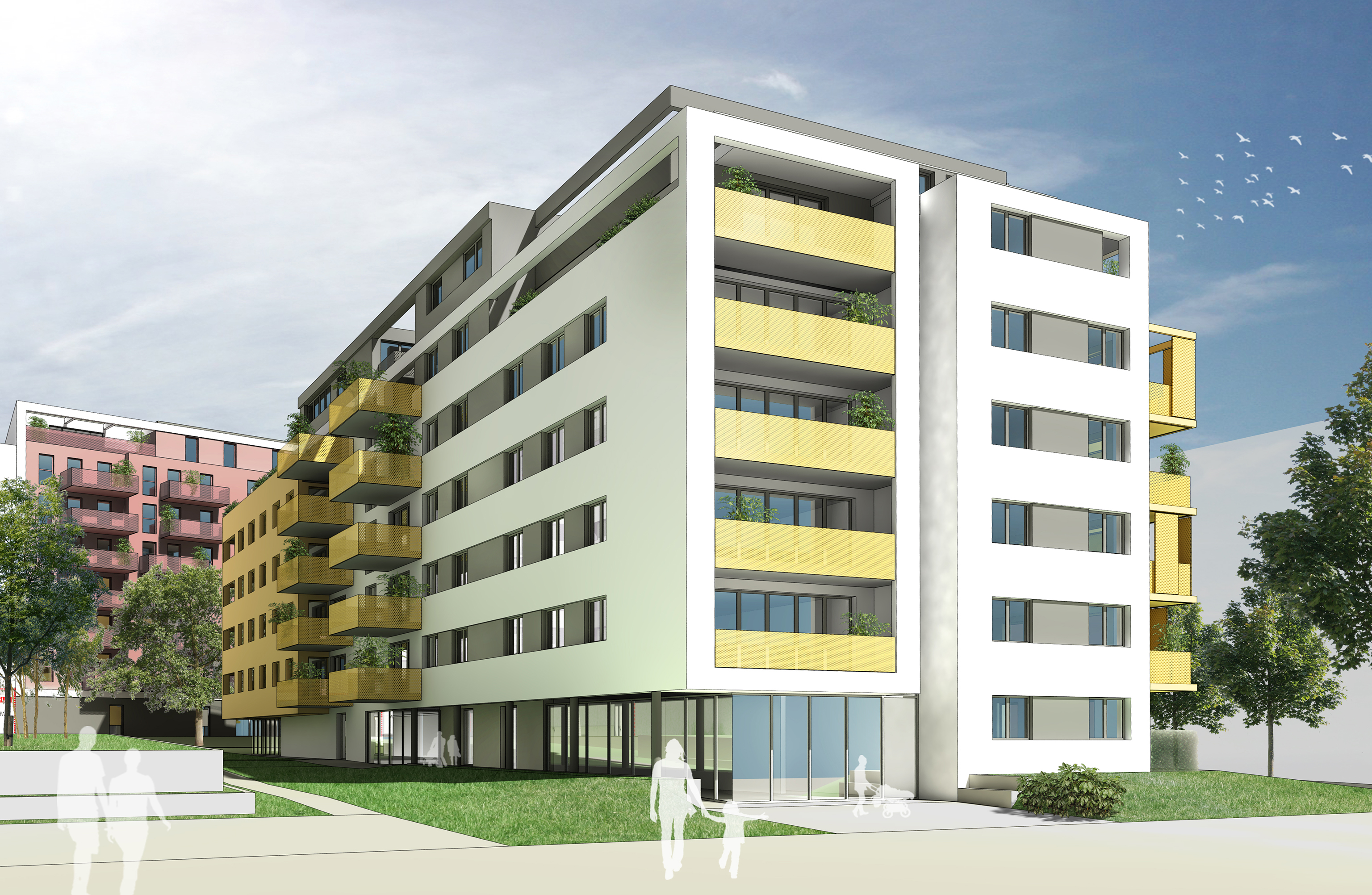 - Alle Wohnungen verfügen über private Freiräume in Form von Balkonen, Loggien, Terrassen oder Gärten.