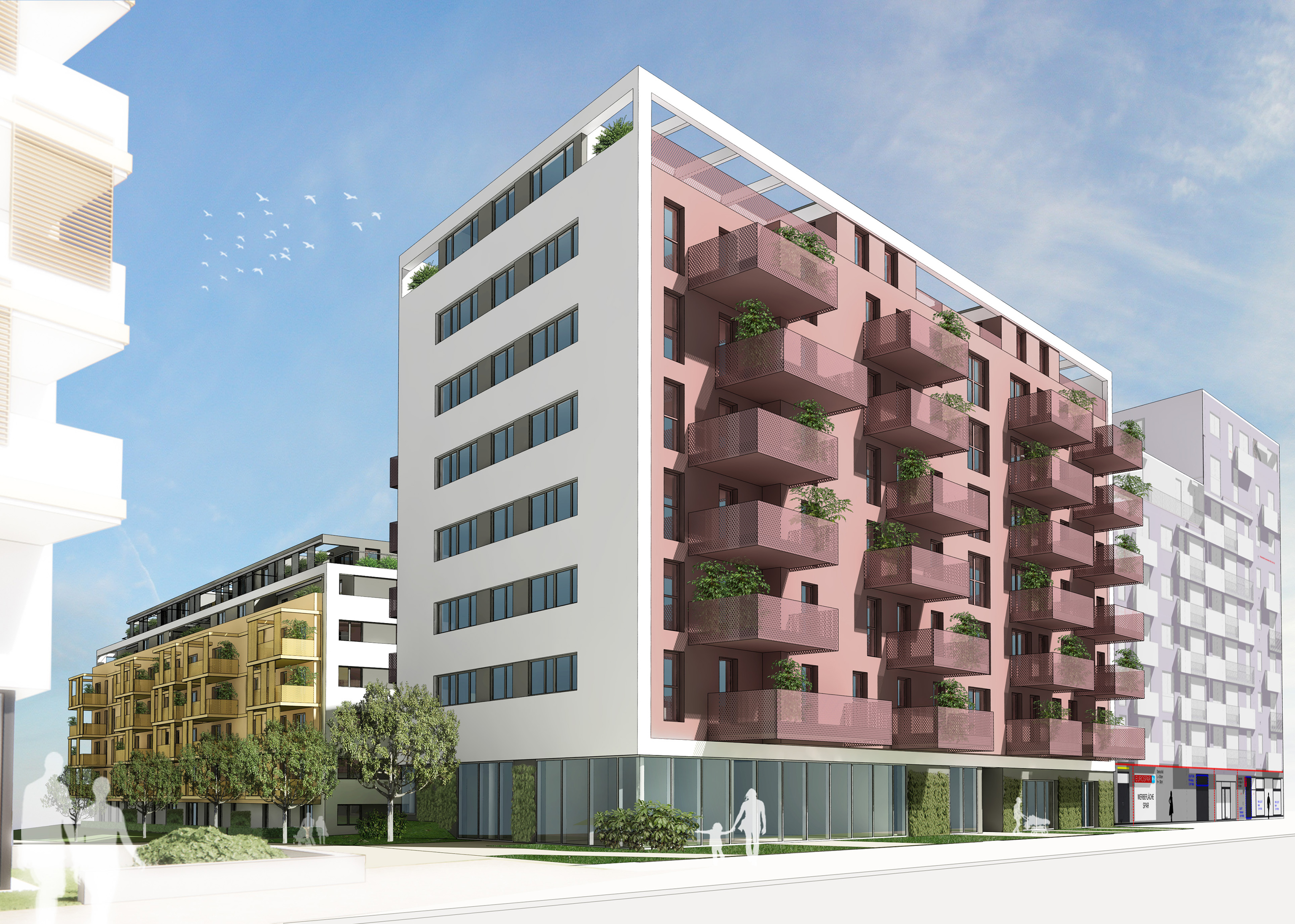 Für eine optimale Infrastruktur sorgen das Einkaufszentrum in der „BahnhofCity“ am Hauptbahnhof, die Wienerberg City sowie die Fußgängerzone Favoriten. Darüber hinaus liegen der Viktor-Adler-Markt, das Einkaufszentrum „Hanssonzentrum“ und Shopping City Süd in unmittelbarer Nähe des neuen Wohnprojekts.