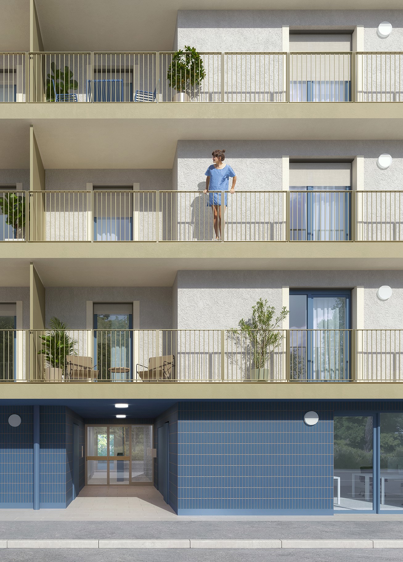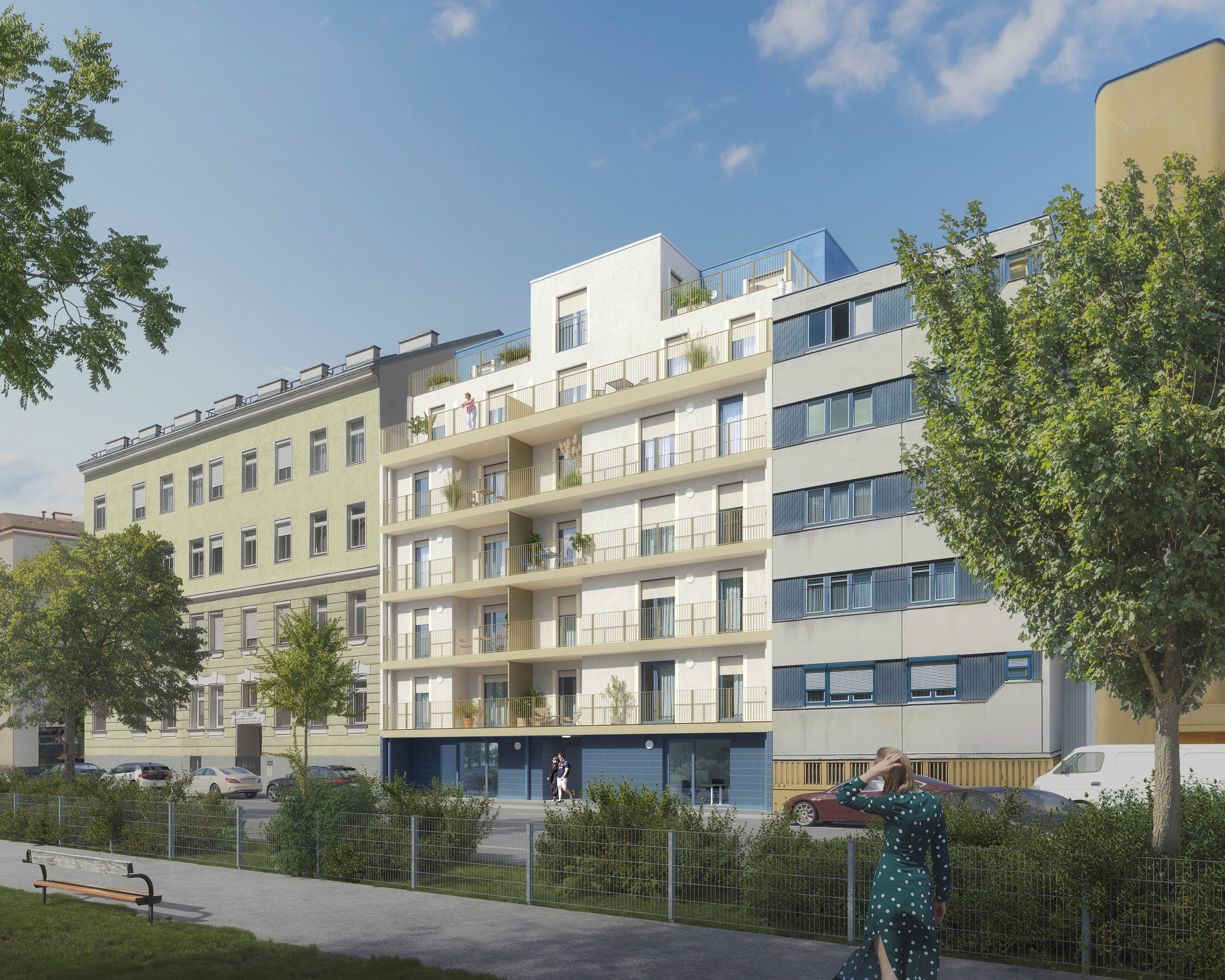 Das Neubauprojekt des Bauträgers EBG befindet sich in einem aufstrebenden Stadtteil von Simmering und besteht aus einem 7-geschoßigen Stiegenhaus in Massivbauweise mit einer aktiven Erdgeschoßzone für Gemeinschaftsfeste und Gewerbeflächen. Das Projekt umfasst insgesamt 18 geförderte Wohnungen mit Superförderung, davon 9 SMART-Wohnungen mit Superförderung.