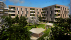Visualisierung des Wohnprojekts Oberes Hausfeld, Bauplatz F2, Straßenansicht