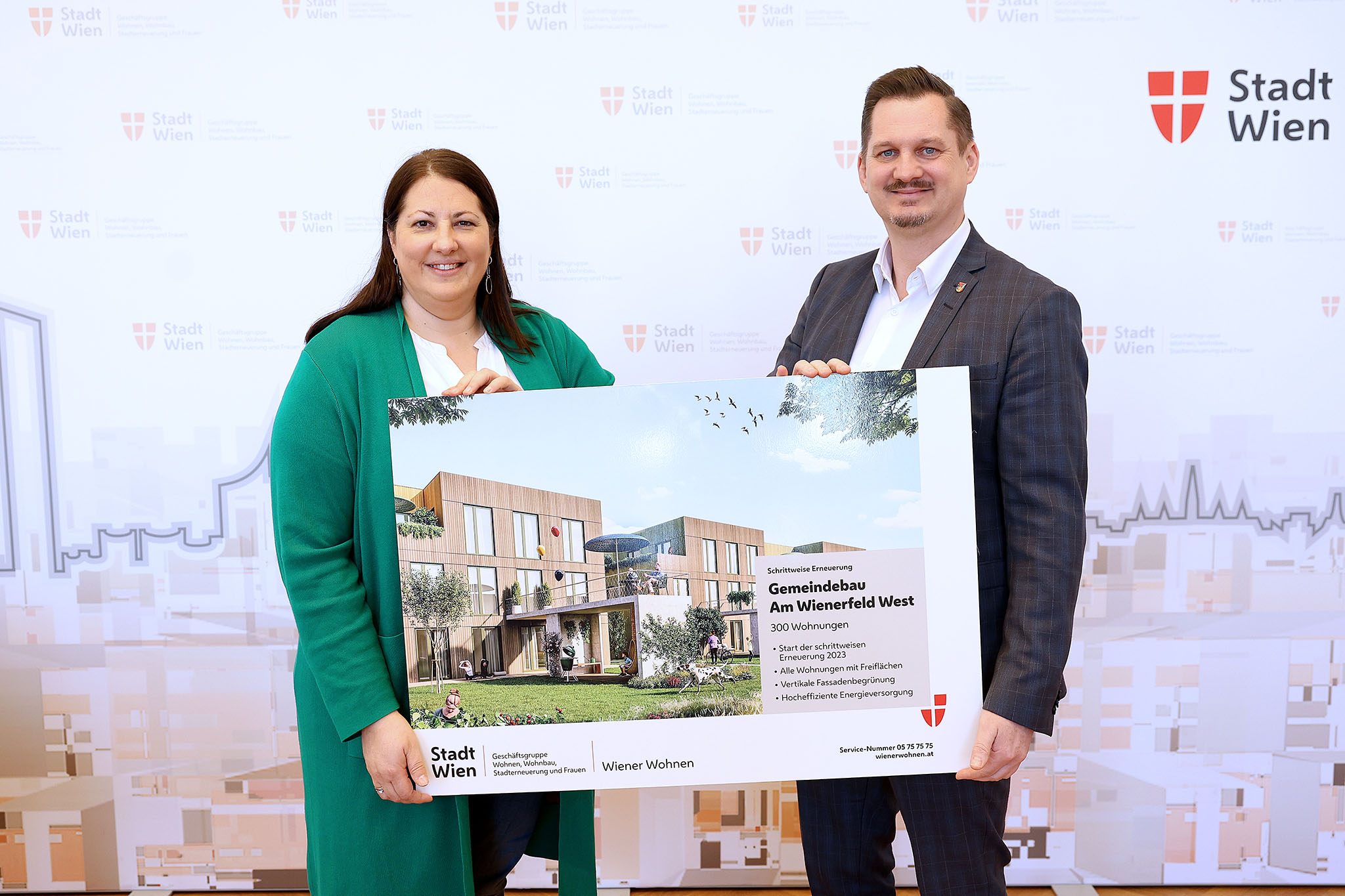 „Das Wienerfeld West ist ein einzigartiges Gemeindebauprojekt in Wien: Eine historisch gewachsene Siedlung aus den 1940er Jahren wird in ein ökologisches Vorzeigeprojekt überführt. Durch Holz‑ und Hybridbauweise, flexible Grundrisse, private Freiflächen und ein klimaaktives Energiekonzept entsteht ein moderner Gemeindebau NEU, der nachhaltige Architektur mit leistbarem Wohnen vereint. Besonders hervorzuheben ist, dass die charakteristische Garten‑ und Kleinsiedlungsstruktur erhalten bleibt – und dennoch rund 150 zusätzliche Gemeindewohnungen geschaffen werden können“, erklärt Vizebürgermeisterin und Wohnbaustadträtin Kathrin Gaál.